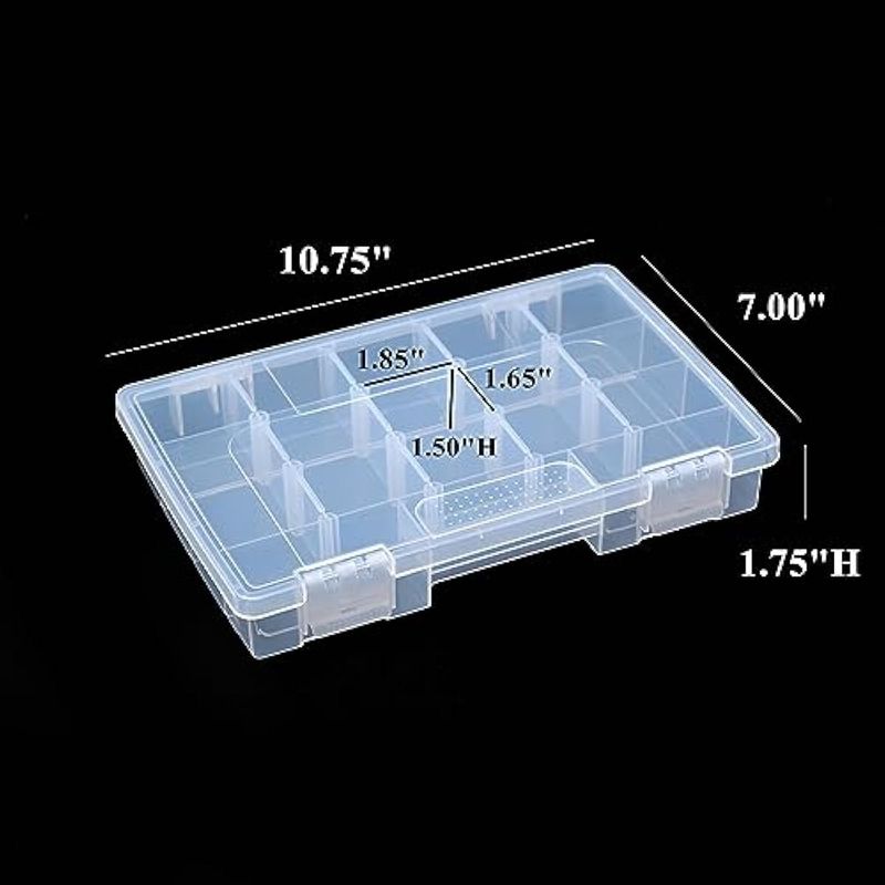 Contenido del paquete: 4 piezas x caja de almacenamiento de plástico transparente con 15 divisores ajustables y 3 secciones fijas
