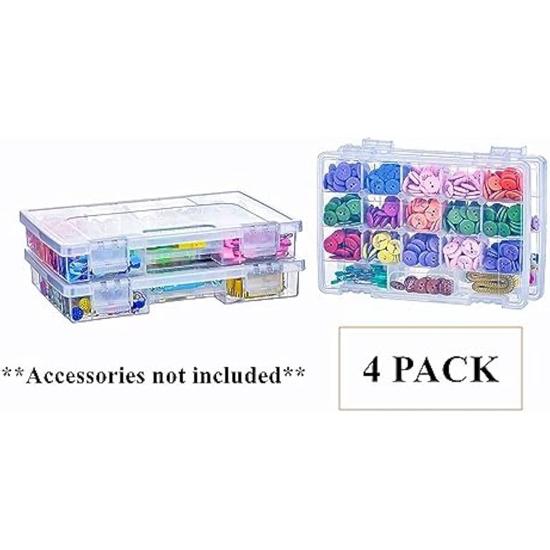 BANGQIAO PAQUETE DE 4 CAJAS ORGANIZADORAS DE PLáSTICO TRANSPARENTE CON 15 DIVISORES AJUSTABLES Y 3 SECCIONES FIJAS, FUNDA DE TRANSPORTE PORTáTIL CON ASA Y TAPA CON BISAGRAS PARA ARTE, SUMINISTROS DE MANUALIDADES, PIEZAS PEQUEñAS, APAREJOS