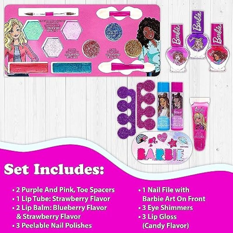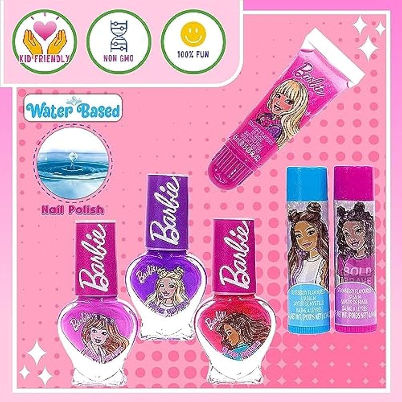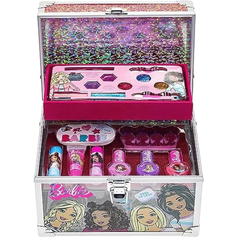 Barbie - Townley Girl Train Case. Juego de maquillaje cosmético que incluye brillo de labios, brillo
