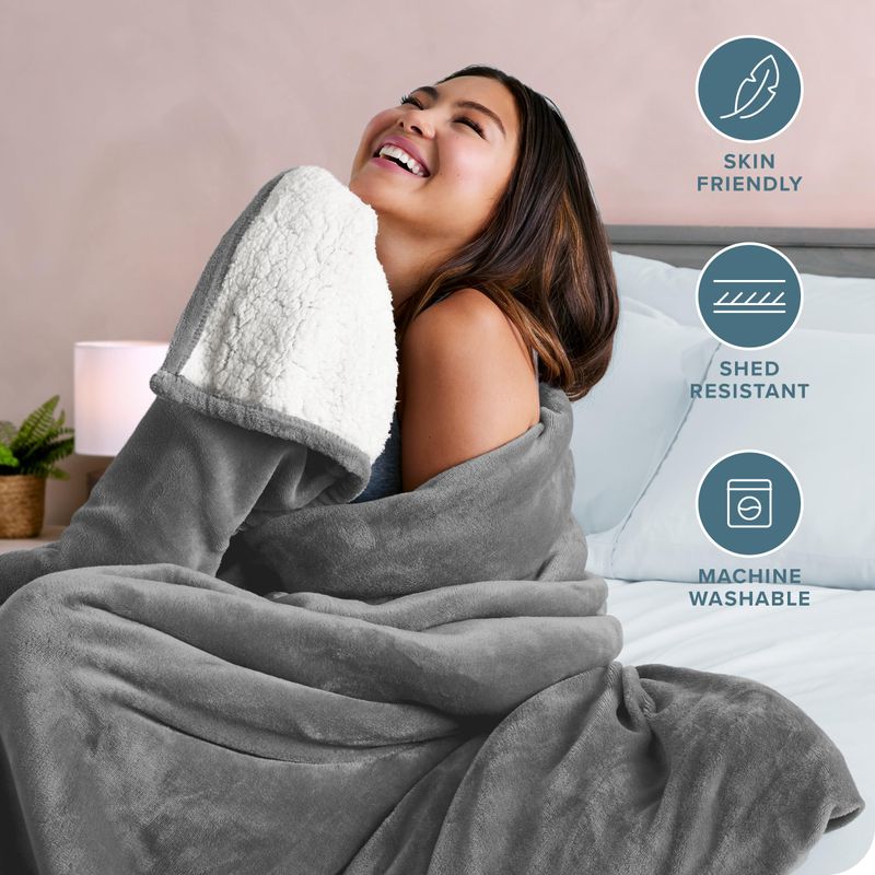 Bare Home - Manta de vellón sherpa, extralarga, para cama o sofá, para campamento o viaje, cálida y