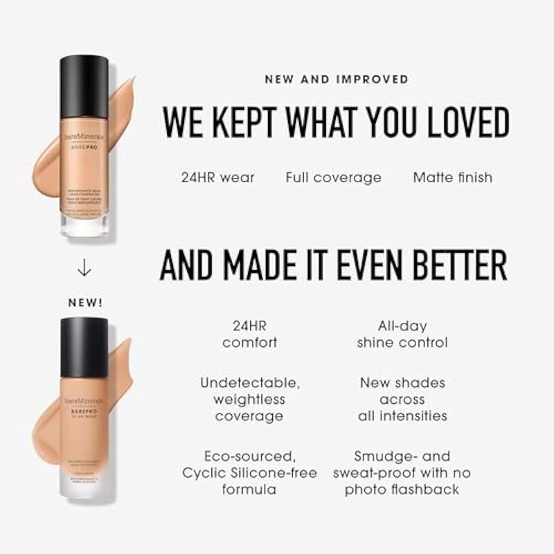 BELLEZA Y SALUDBELLEZA Y CUIDADO CORPORALMAQUILLAJEbareMinerals Barepro 24HR Wear Base líquida mate Mineral SPF 20, maquillaje de base de cobertura