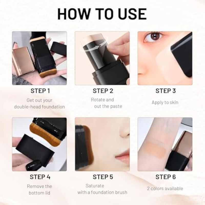 Barra de base 2 en 1, barra de base de borrador con brocha, maquillaje de base correctora (color