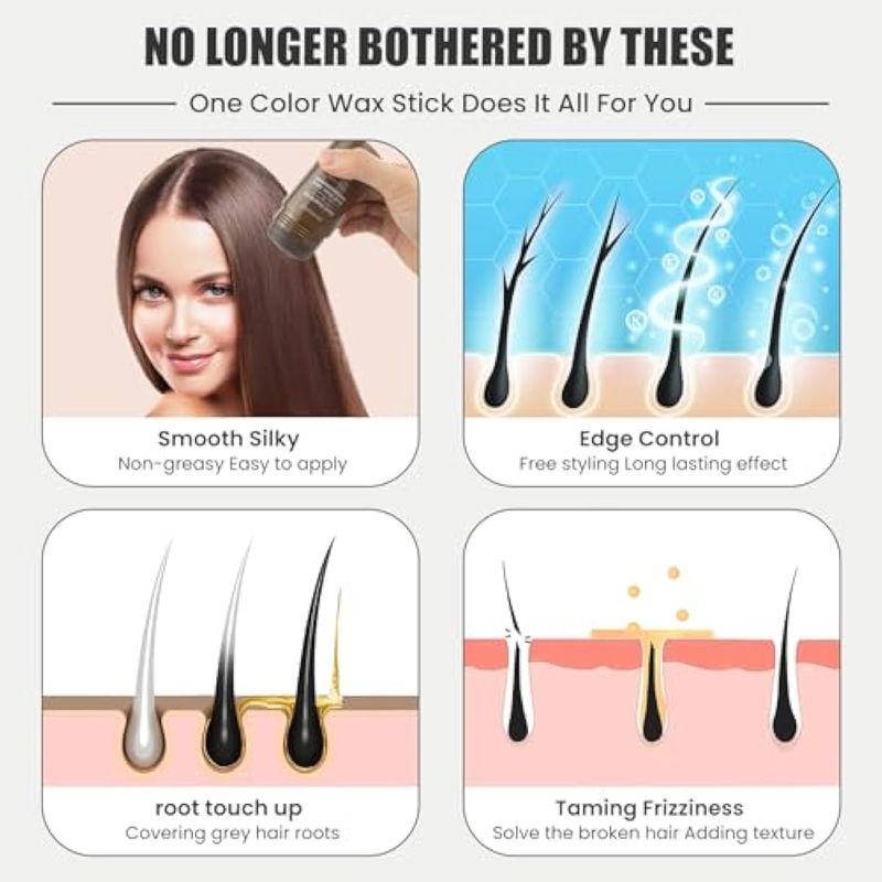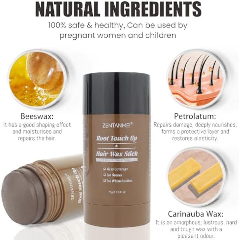 Barra de cera de retoque de raíz para cobertura de cabello gris, barra de polvo de línea capilar no