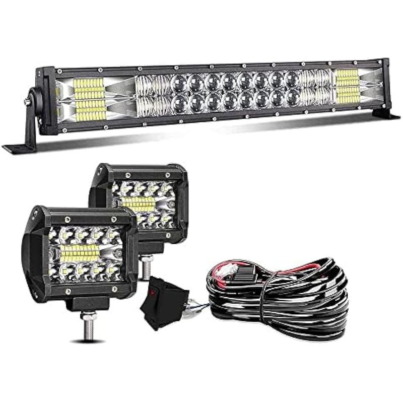 BARRA DE LUZ LED DE 22 PULGADAS, 120 W, HAZ COMBINADO DE LUZ DE CONDUCCIóN LED, LUCES TODOTERRENO, LUZ DE TRABAJO, 2 UNIDADES DE 4 PULGADAS, 60 W, LUCES ANTINIEBLA CON INTERRUPTOR BASCULANTE, ARNéS PARA CAMIóN, JEEP, SUV, UTE, ATV, 4X4, BOTE PICKUP