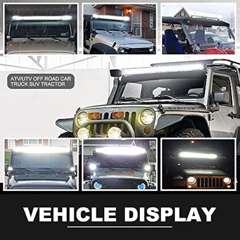 ????Brillo y actualizaciones extremas: Primero: chips LED avanzados adaptados para dar más iluminación para un horizonte más claro. Segundo: la taza de reflexión de diseño especial conduce a un mejor rendimiento reflectante, lente PMMA mejorada para proporcionar una condición de trabajo más segura para la barra de luz. Tercero: la barra de luz LED viene con haz combinado de punto 30 grados e inundación 60 grados. , más de 50,000 horas de vida útil, IP67 impermeable, resistente al polvo y a prueba de golpes, con una respiración resistente para drenar la mayoría de la niebla, apto para todo tipo de clima.