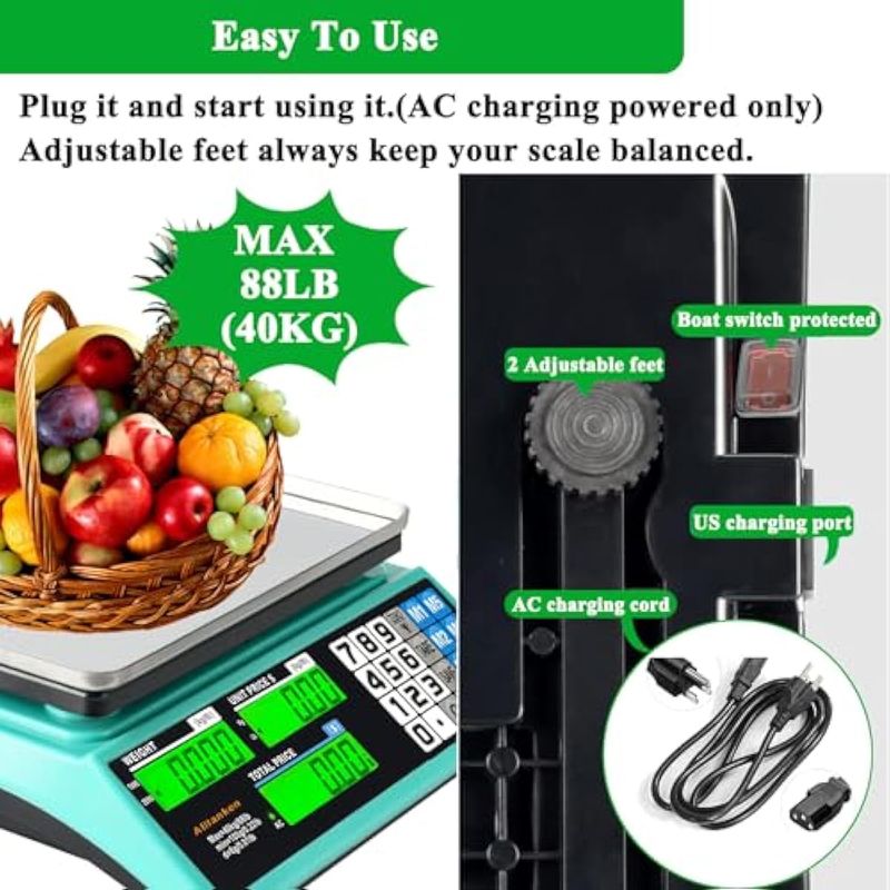 Báscula de cálculo de precios, báscula digital comercial de alimentos, escala de conteo electrónico
