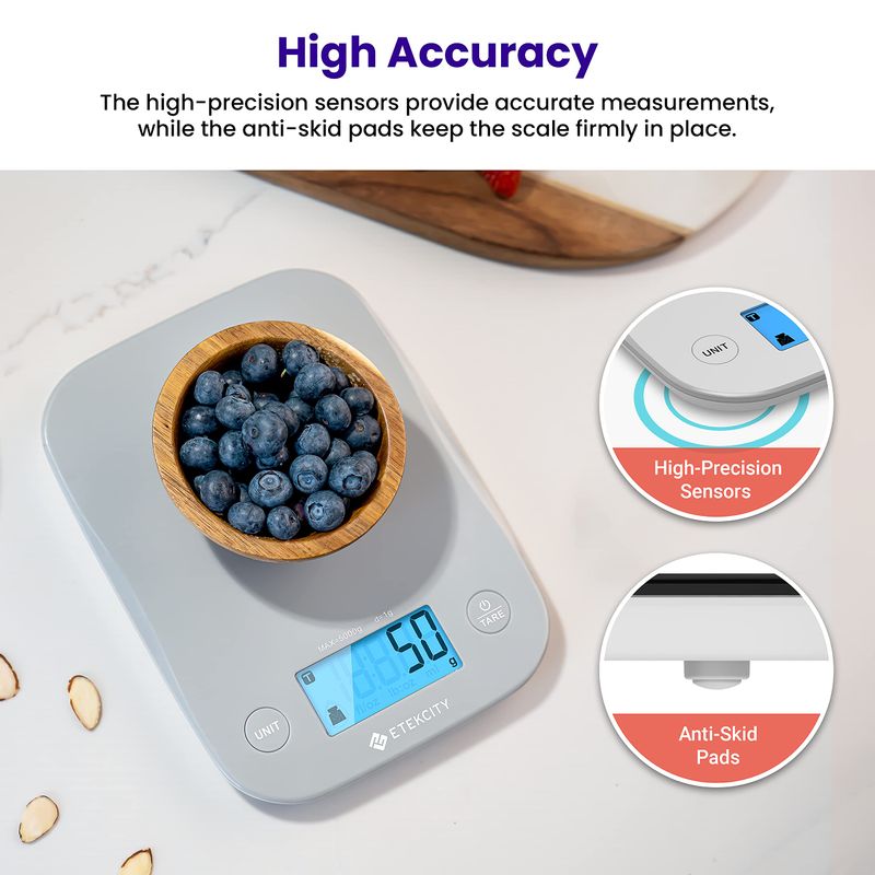 BáSCULA DE COCINA DIGITAL MULTIFUNCIóN ETEKCITY, BáSCULA DE ALIMENTOS, 11 LBS, PLATA, ACERO INOXIDABLE (PILAS INCLUIDAS).