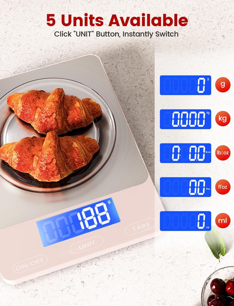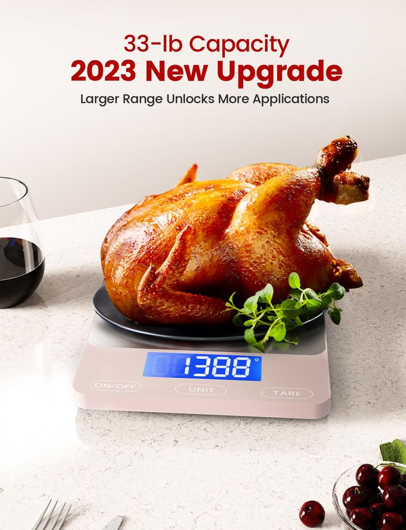 Báscula digital de cocina de 33 libras para alimentos, onzas de gramos, de acero inoxidable 304,