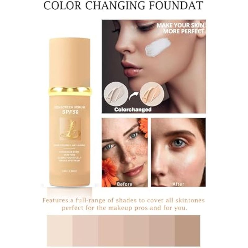 Protección versátil: esta base no solo cubre imperfecciones, sino que también protege tu piel de los daños del sol. Se aplica ligera y sin problemas, sin dejar rastro para un efecto natural y desnudo.