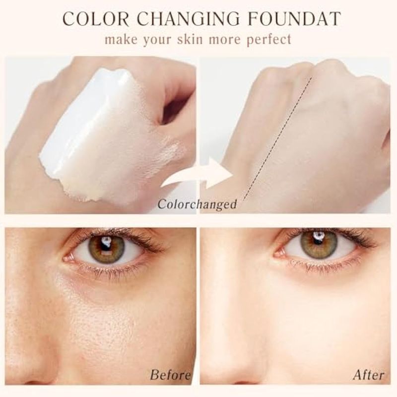 Base de maquillaje que cambia de color 4 en 1 de espectro medio, base impecable que cambia de color,