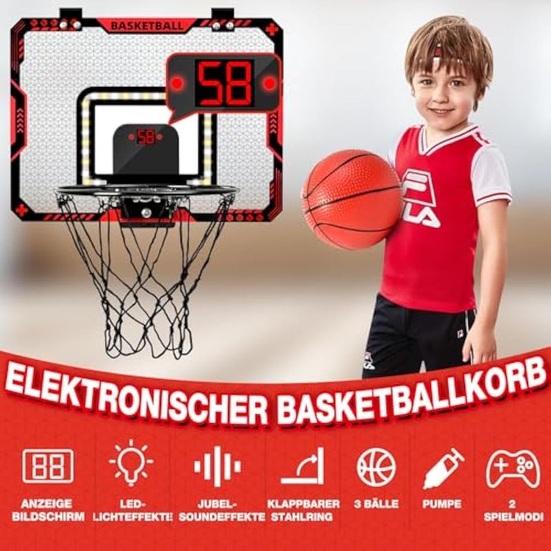 BEBES Y NIÑOSJUGUETESBATURU Mini Basketball Hoop Indoor with LED Lighting & Scoreboard & Sound - Over The Door