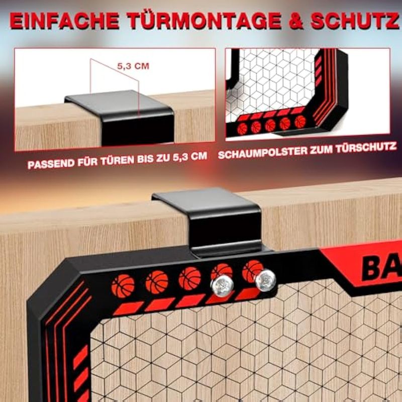 BATURU Mini Basketball Hoop Indoor with LED Lighting & Scoreboard & Sound - Over The Door