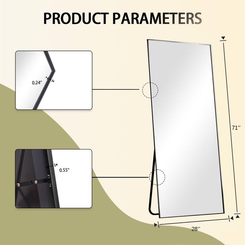 BEAUTYPEAK Espejo de longitud completa de 64 x 21 pulgadas, nano vidrio, espejo rectangular de pie,