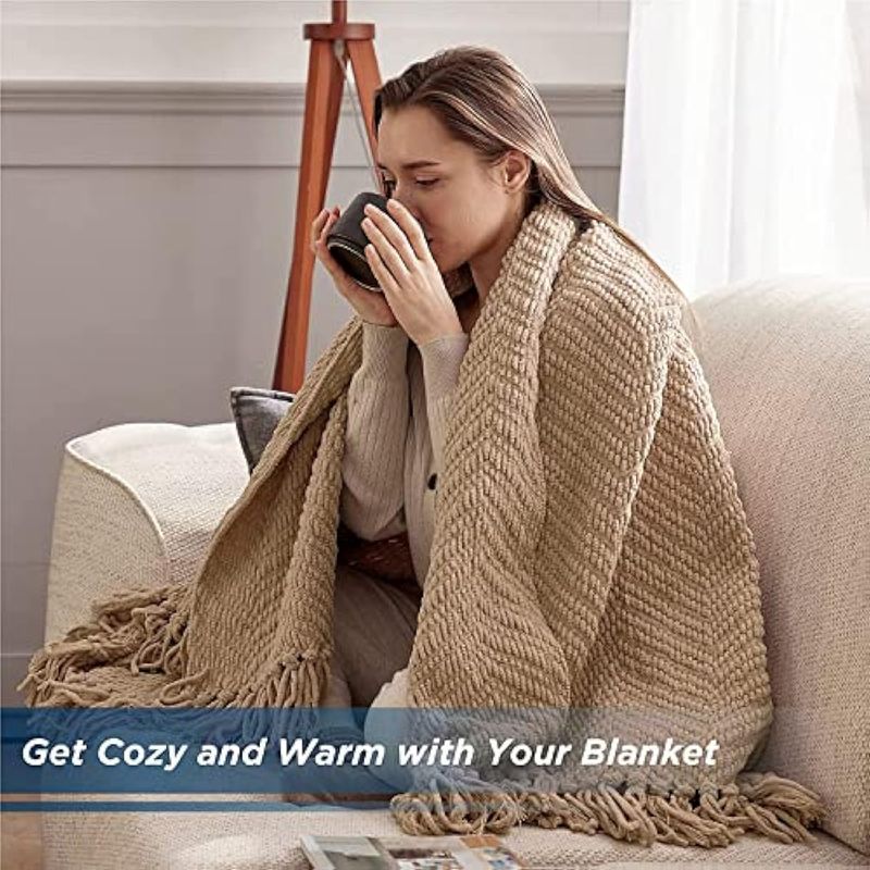 Bedsure - Manta para sofá, manta de felpilla tejida versátil color blanco crema para silla, manta