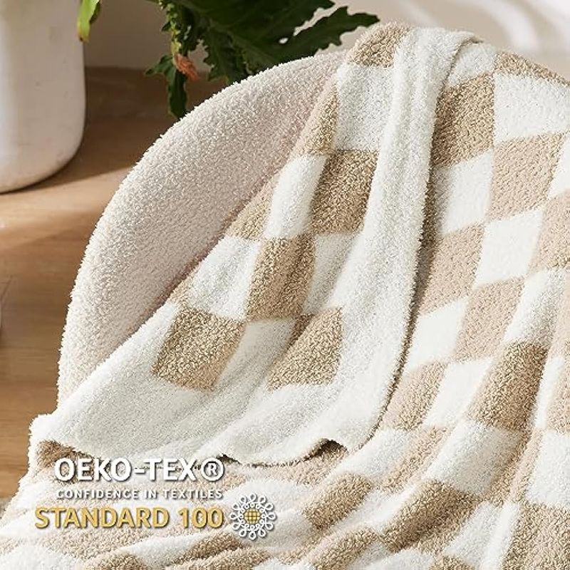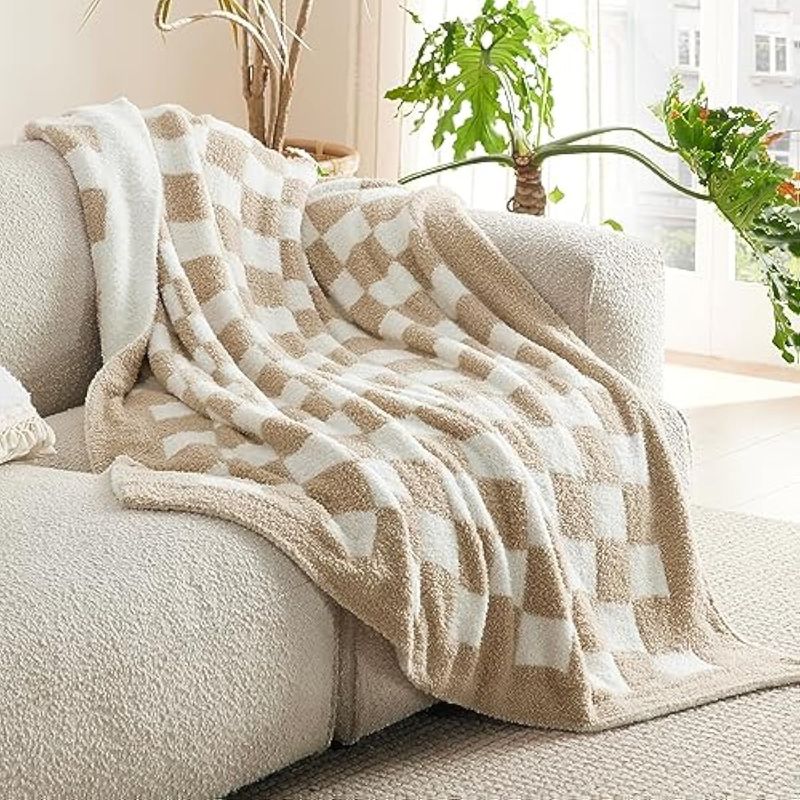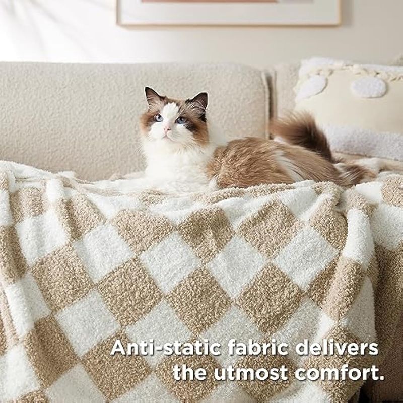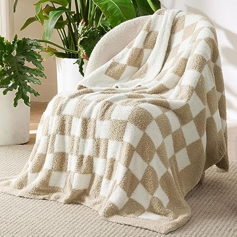 BEDSURE MANTA DE PUNTO SúPER SUAVE, CáLIDA Y ACOGEDORA MANTA REVERSIBLE CON ESTAMPADO DE TABLERO DE AJEDREZ, MULLIDA, LIGERA, PARA SOFá, CAMA (50 X 60 PULGADAS)