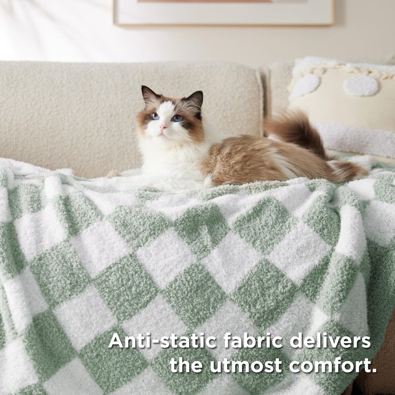 Bedsure Manta de punto súper suave, cálida y acogedora manta reversible con estampado de tablero de