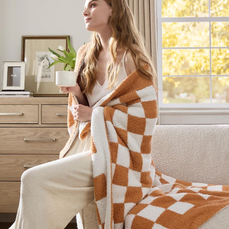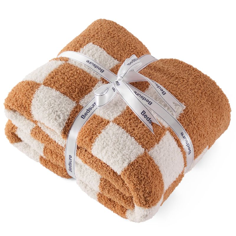 HOGARBLANQUERIACUBRECAMABedsure Manta de punto súper suave, cálida y acogedora manta reversible con estampado de tablero de