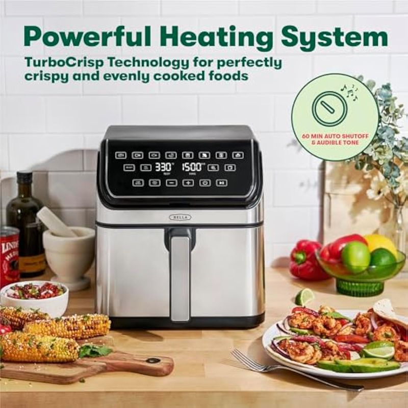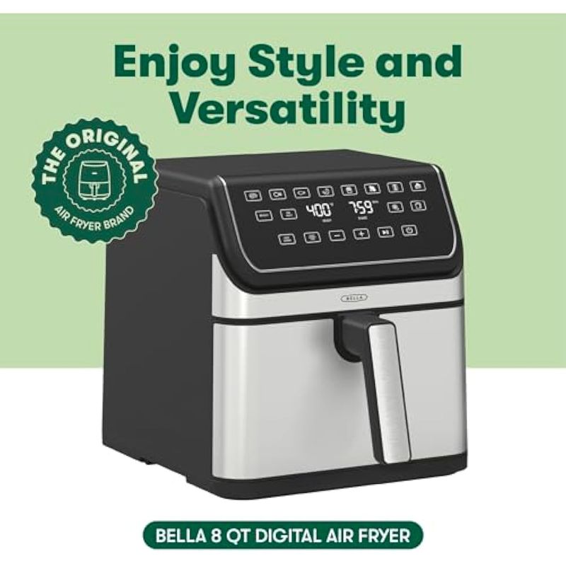 BELLA Freidora de aire digital de 8.0 QT, acero inoxidable