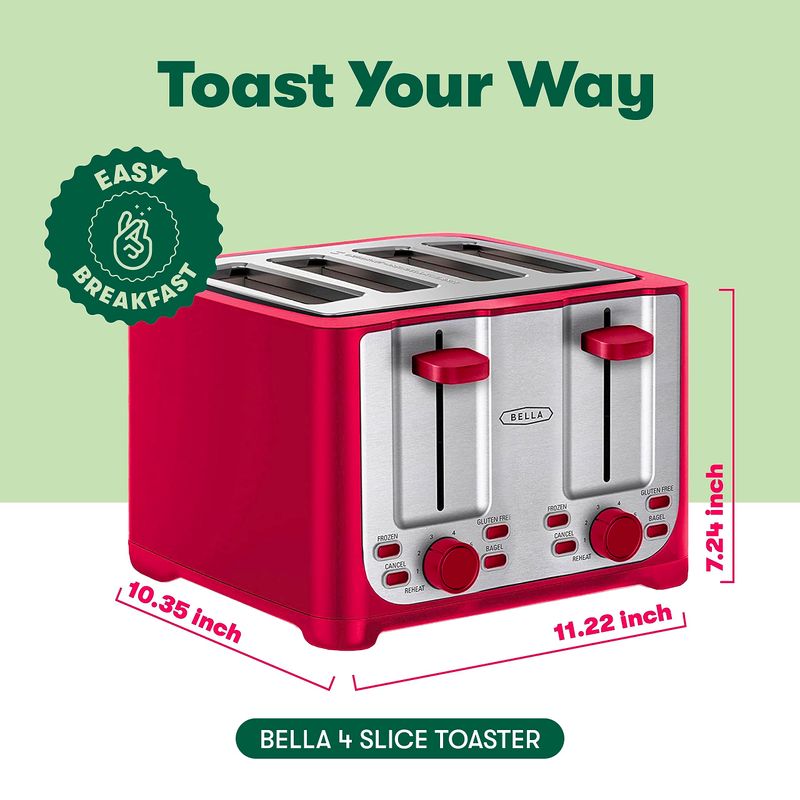 BELLA Tostadora de 4 rebanadas con apagado automático, ranuras extra anchas y bandeja extraíble para