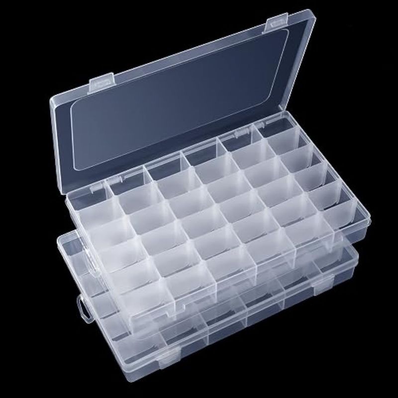 Tamaño perfecto: la caja exterior mide 10.8 x 6.9 x 1.7 pulgadas, mientras que cada rejilla individual mide 1.7 x 1.7 x 1.1 pulgadas de tamaño. Nuestra caja de plástico cuenta con una tapa fácil de usar que es fácil de abrir y dos cierres duraderos que mantienen tus artículos de forma segura en su lugar, protegiendo tus artículos de que se caigan.