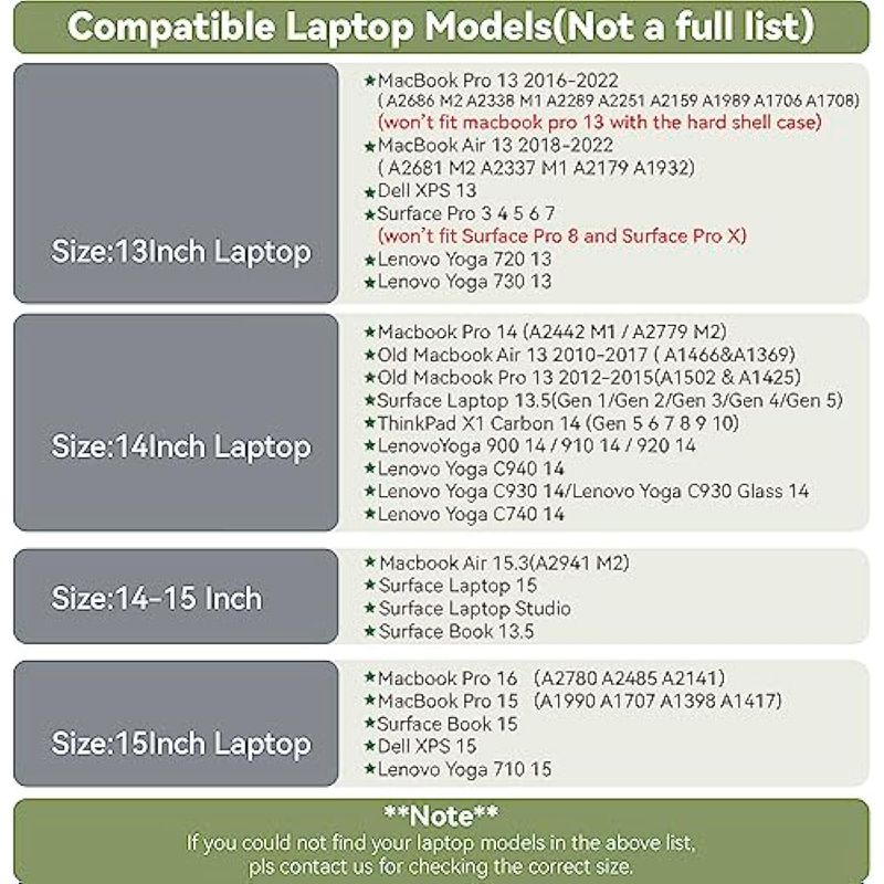 ????Tamaño perfecto: nuestra funda para portátil es compatible con MacBook Pro 14 A2442, MacBook Air 13 2010-2017 A1466 y A1369, MacBook Pro 13 2012-2015 A1502 y A1425, Surface Laptop 13.5, ThinkPad X1 Carbon 14. Gen 10Gen 9Gen 8Gen 7Gen 6Gen 5, LenovoYoga 900 910920 14, Lenovo Yoga C940C930C930 GlassC740 14.
