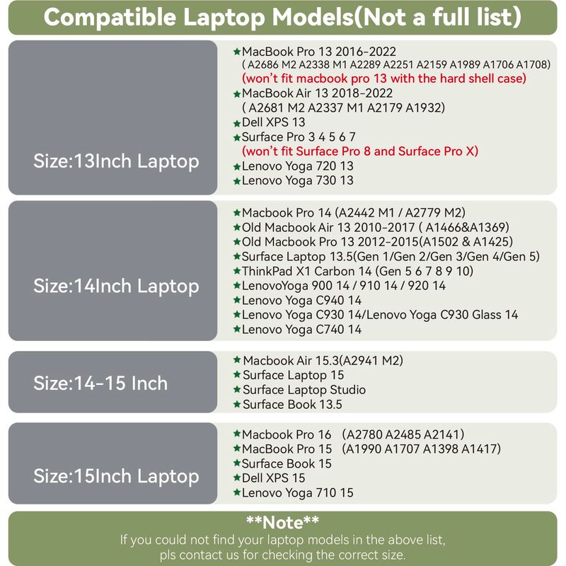 ????Tamaño perfecto: nuestra funda para portátil es compatible con MacBook Pro 14 A2442, MacBook Air 13 2010-2017 A1466 y A1369, MacBook Pro 13 2012-2015 A1502 y A1425, Surface Laptop 13.5, ThinkPad X1 Carbon 14. Gen 10Gen 9Gen 8Gen 7Gen 6Gen 5, LenovoYoga 900 910920 14, Lenovo Yoga C940C930C930 GlassC740 14.