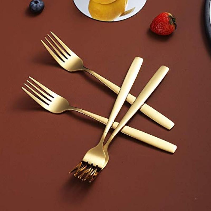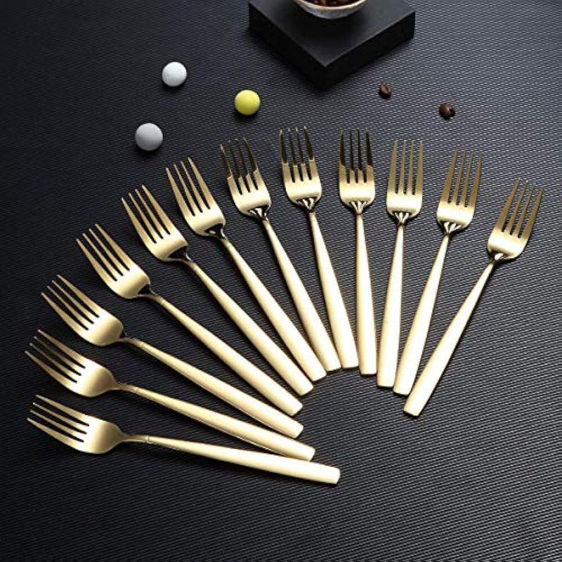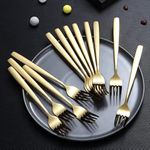 Berglander Juego de 12 tenedores dorados de acero inoxidable, juego de tenedores chapados en oro de