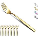 HOGARBAZARUTENSILIOS DE COCINABerglander Juego de 12 tenedores dorados de acero inoxidable, juego de tenedores chapados en oro de