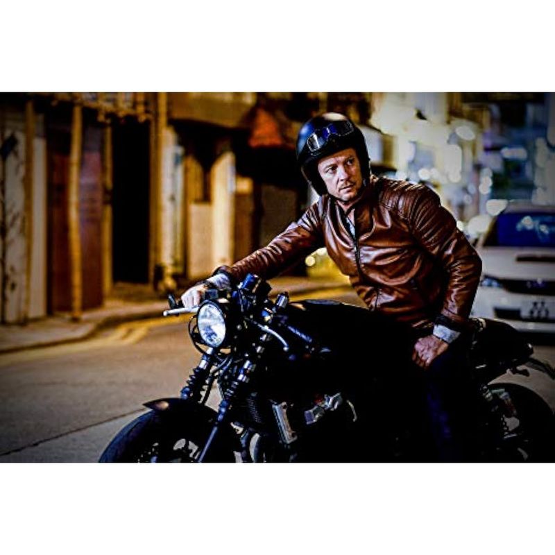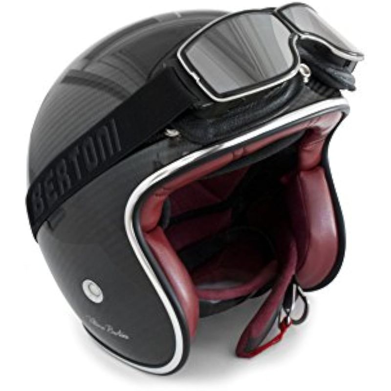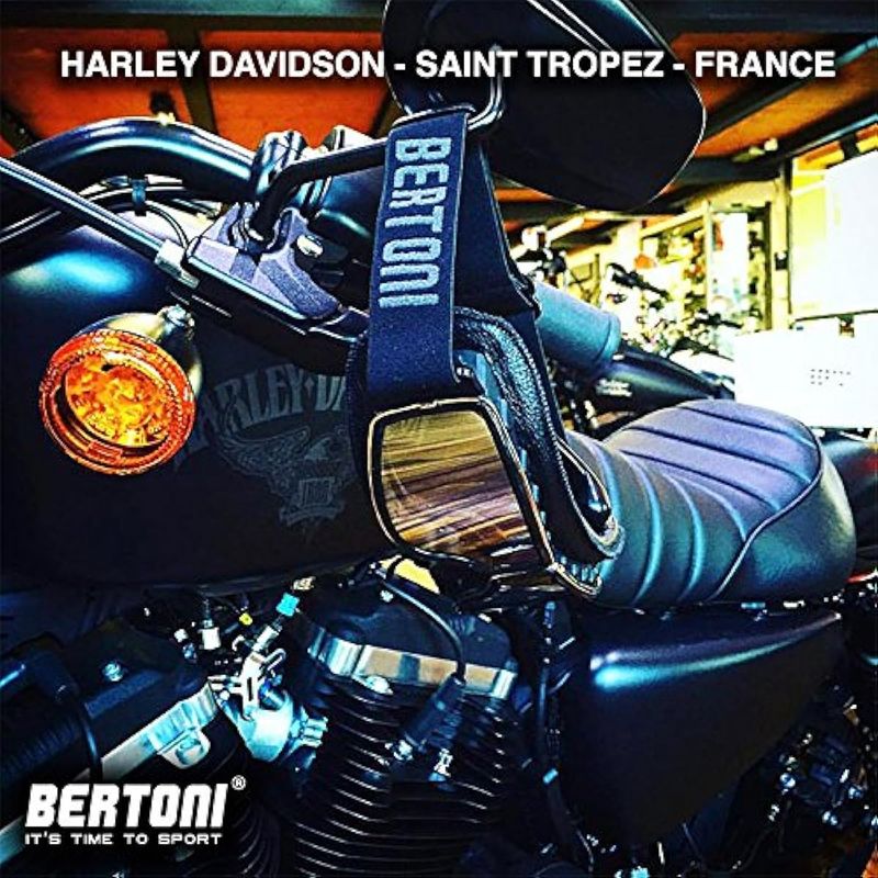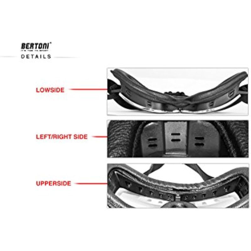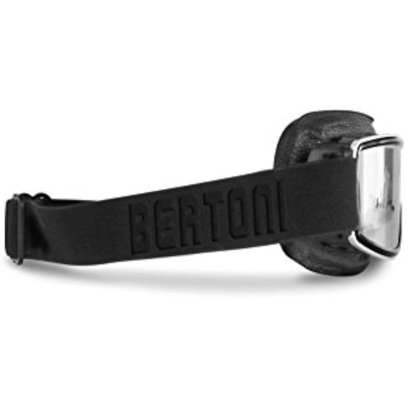 Bertoni AF188 Lentes de seguridad para motociclista, de piel color negro con marco de metal cromado,