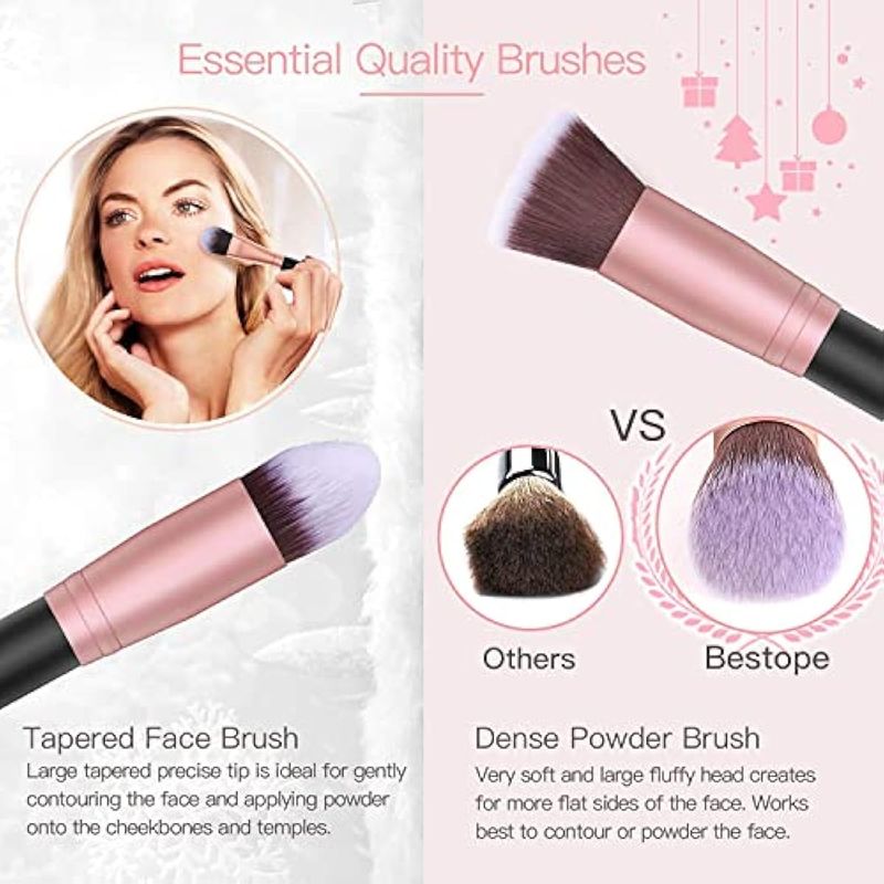 BESTOPE - JUEGO DE 16 BROCHAS DE MAQUILLAJE CON 4 ESPONJAS DE MAQUILLAJE Y 1 LIMPIADOR DE BROCHAS DE BASE SINTéTICA DE PRIMERA CALIDAD, MEZCLA DE POLVO DE CARA, SOMBRAS DE OJOS, HERRAMIENTA DE MAQUILLAJE (ORO ROSA)