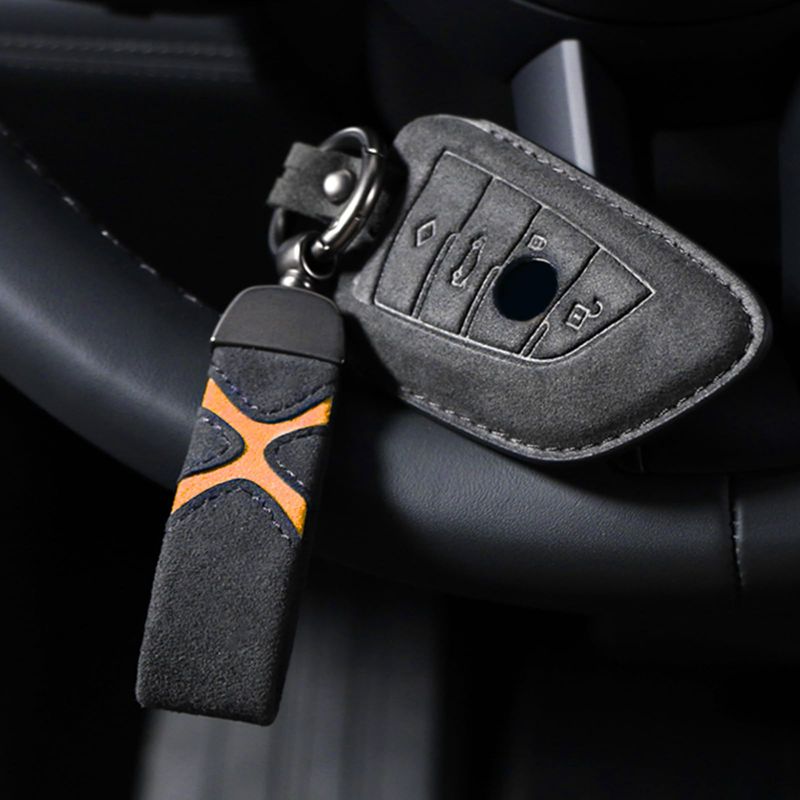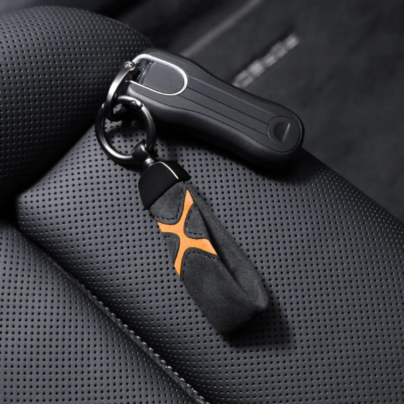 RODADOSHERRAMIENTAS PARA AUTOBETTERHUMZ Llavero de cuero de gamuza para coche, clip para llavero para Alcantara, anillo en D