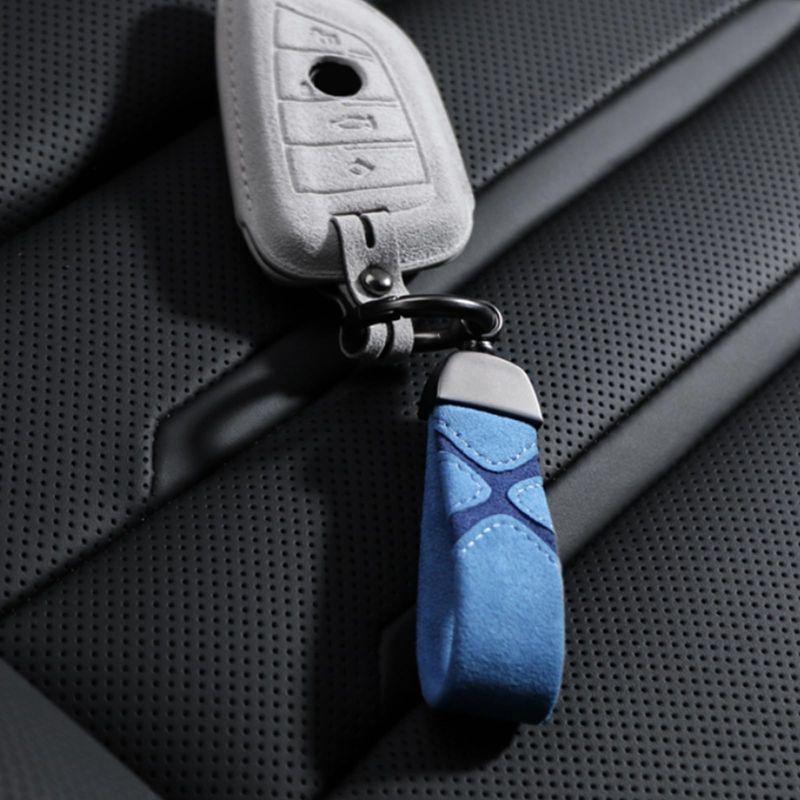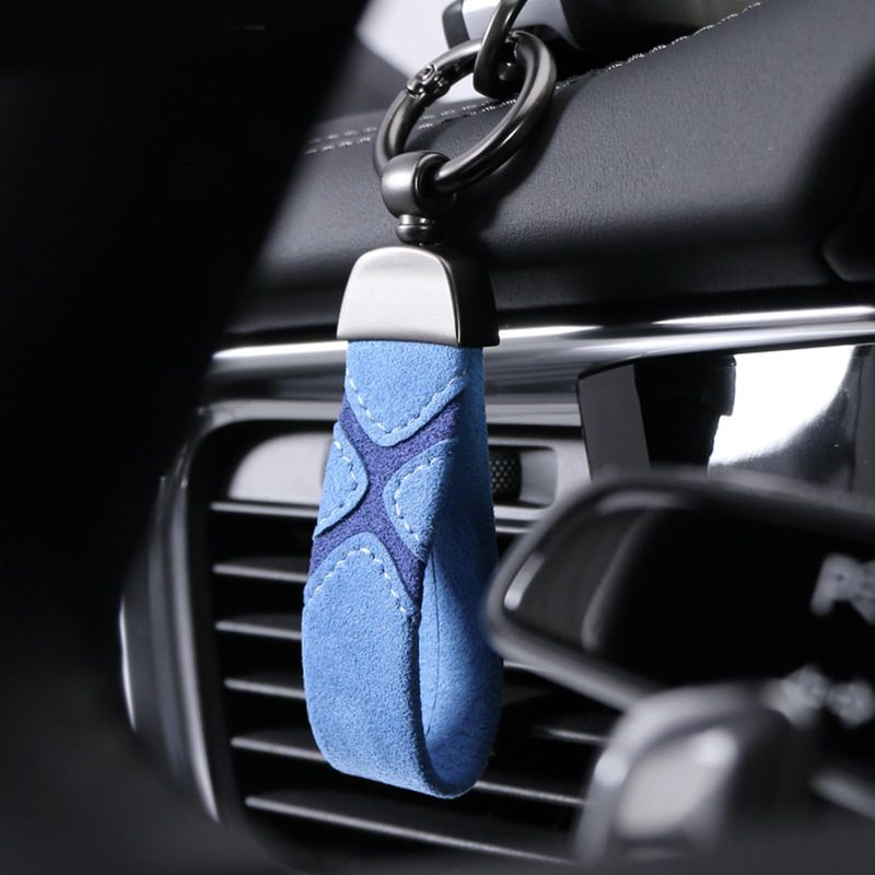 RODADOSHERRAMIENTAS PARA AUTOBETTERHUMZ Llavero de cuero de gamuza para coche, clip para llavero para Alcantara, anillo en D