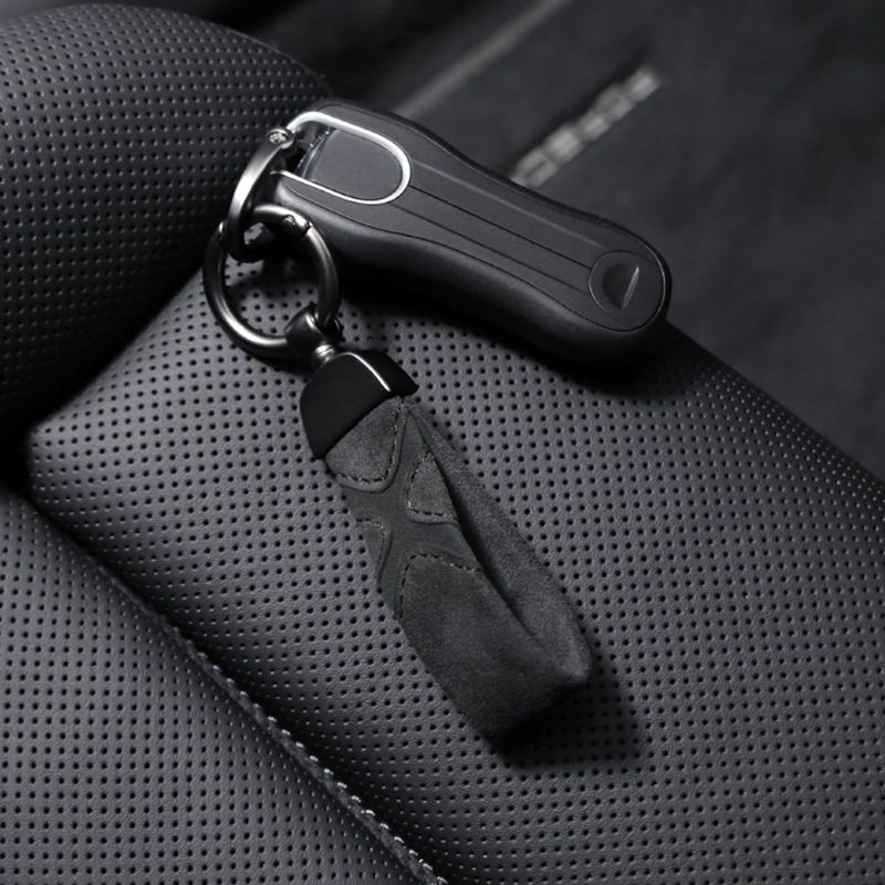 BETTERHUMZ Llavero de cuero de gamuza para coche, clip para llavero para Alcantara, anillo en D