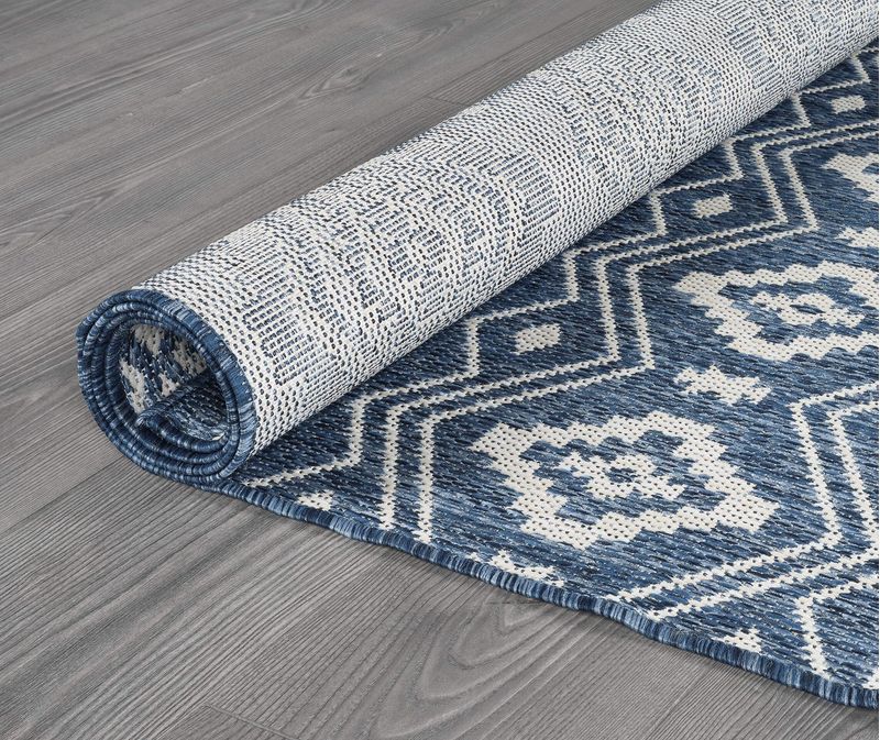 BEVERLY RUG WAIKIKI - TAPETE DE 8 X 10 PIES, PARA INTERIORES Y EXTERIORES, LAVABLE, PARA PATIO, TERRAZA, PORCHE, TAPETE MODERNO CON BORDES, RESISTENTE AL AGUA, COLOR AZUL, BLANCO