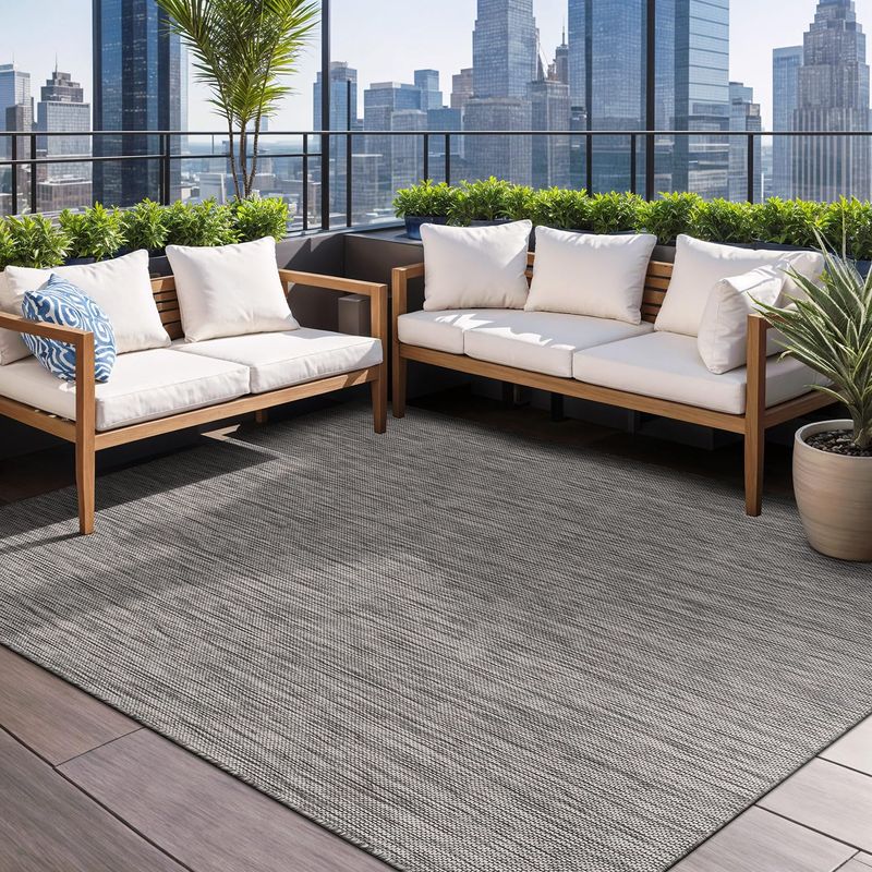 Ideales para uso en interiores o exteriores: nuestros modernos tapetes con bordes funcionan como tapetes de sala de estar, tapetes de comedor para colocar debajo de la mesa, tapetes de oficina en casa o tapetes de exteriores para patio, porche, terraza, glorieta, junto a la piscina, garaje o patio trasero.