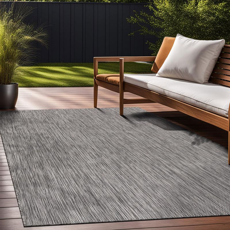 Ideales para uso en interiores o exteriores: nuestros modernos tapetes con bordes funcionan como tapetes de sala de estar, tapetes de comedor para colocar debajo de la mesa, tapetes de oficina en casa o tapetes de exteriores para patio, porche, terraza, glorieta, junto a la piscina, garaje o patio trasero.