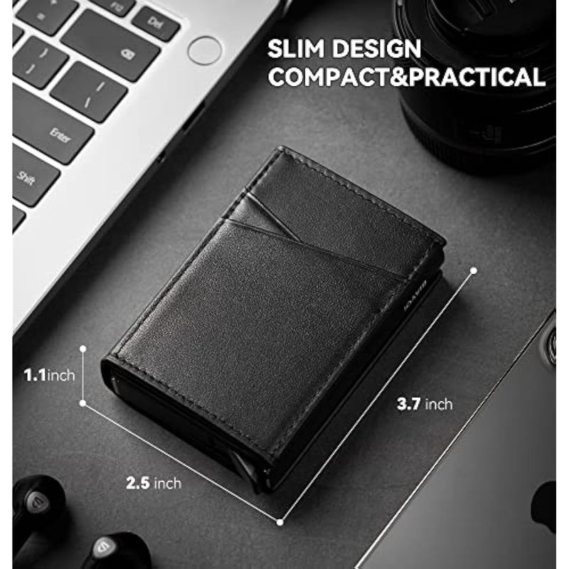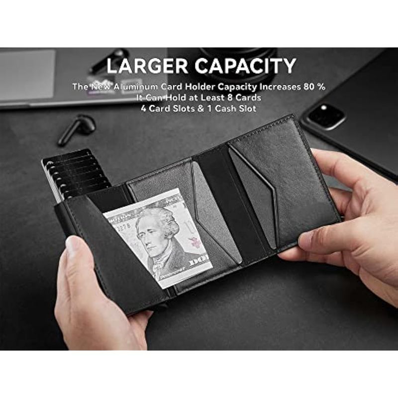 Capacidad para 13 tarjetas: la funda de metal para tarjetas está diseñada para contener 8-10 tarjetas de tamaño estándar, banco o tarjetas de identificación, la capacidad real depende del grosor de la tarjeta. La cartera también tiene 5 ranuras adicionales para tarjetas para satisfacer tus necesidades de capacidad.