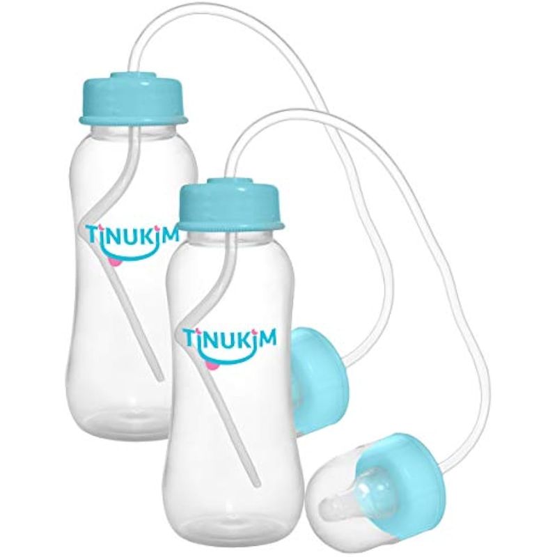 Biberón de manos libres, sistema anticólicos, sistema de lactancia (set de 2), por Tinukim, Azul