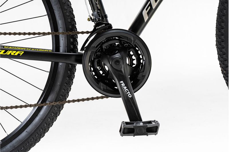 Equipada con 21 velocidades FRACTO Rapid Fire, permite un cambio ágil y preciso, adaptándose fácilmente a distintos terrenos y pendientes. La horquilla con suspensión mecánica absorbe mejor las irregularidades del camino, mejorando el confort en cada recorrido.