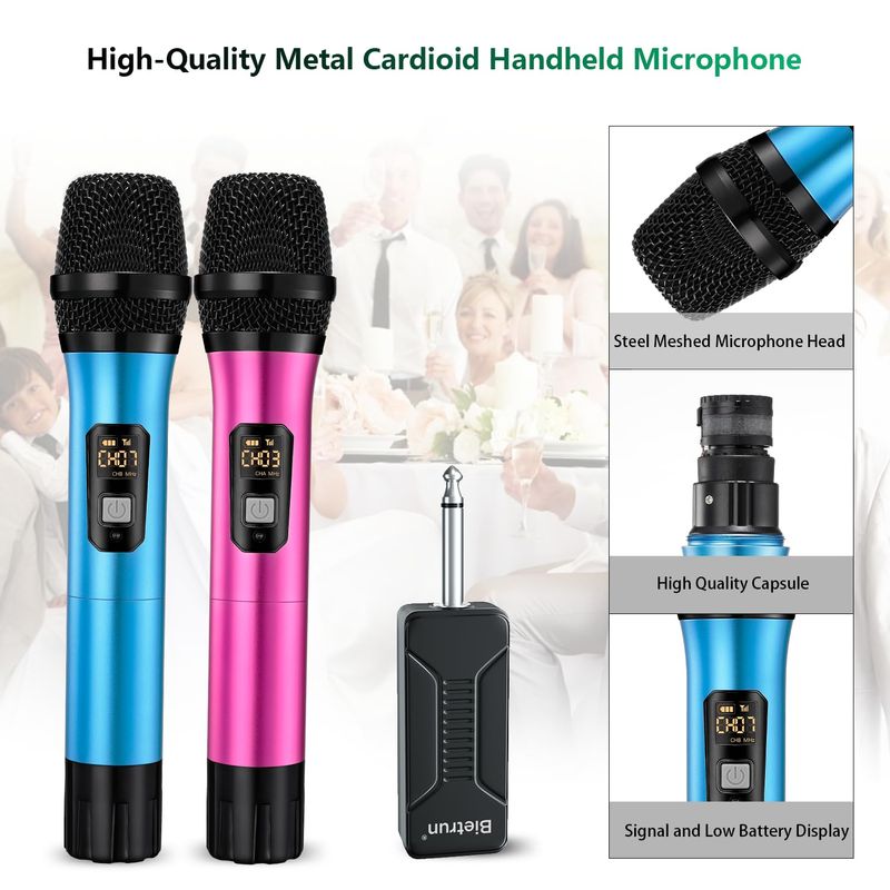 BIETRUN SISTEMA DE MICRóFONO DINáMICO DE MICRóFONO INALáMBRICO CON RECEPTOR RECARGABLE, SALIDA DE 1/4 PULGADAS, PARA KARAOKE, IGLESIA, DISCURSO, BODA, CANTO DE FIESTA (RANGO DE 160 PIES) - CONEXIóN