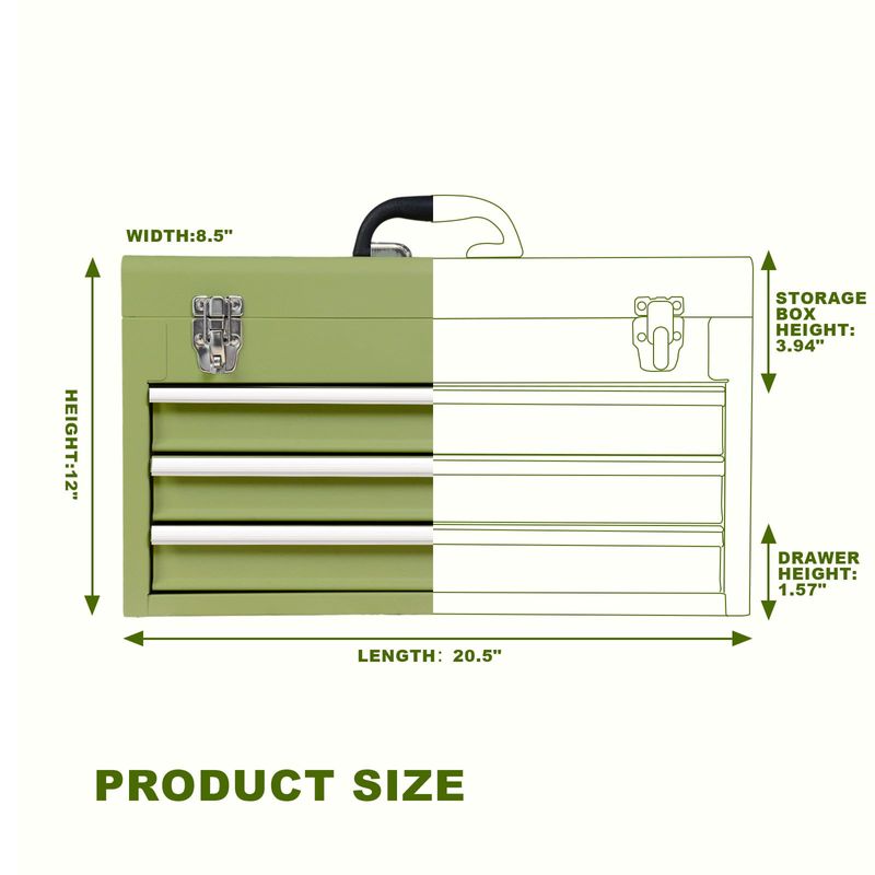 BIG RED ANTBD133-XB Torin Caja de herramientas portátil de acero con 3 cajones de 20 pulgadas con