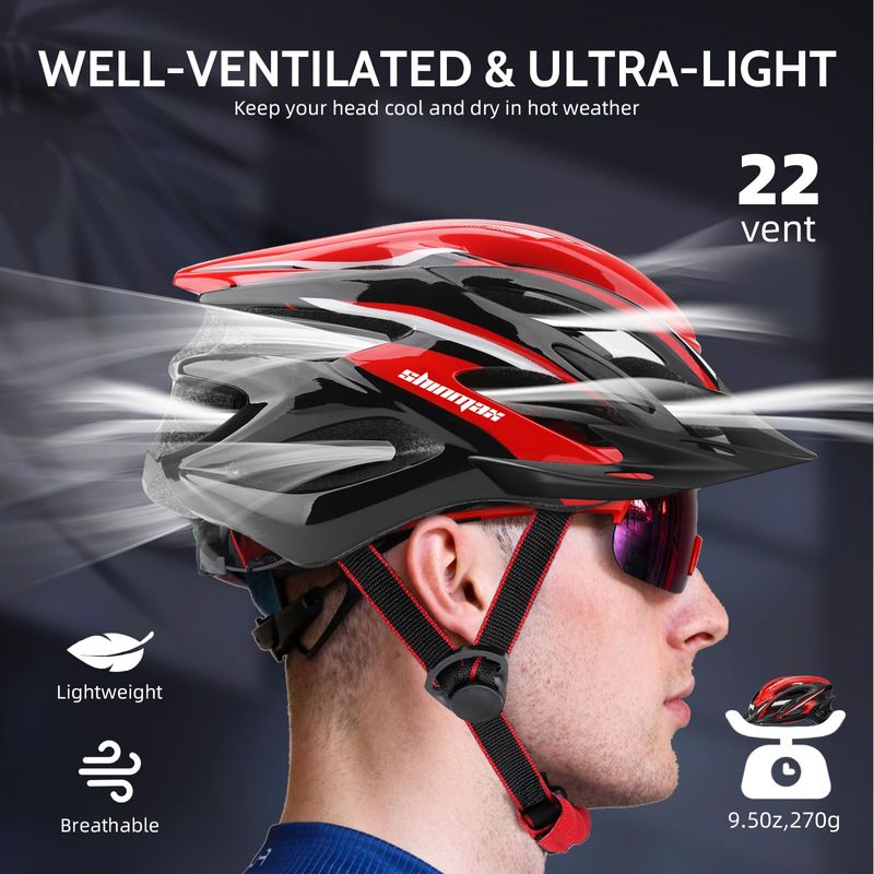 RODADOSCASCOSBike Helmet Men Women, Shinmax Bicycle Helmet with Rear Light and Detachable Visor,Lightweight