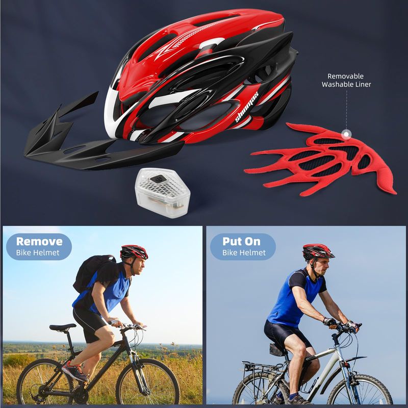 Bike Helmet Men Women, Shinmax Bicycle Helmet with Rear Light and Detachable Visor,Lightweight