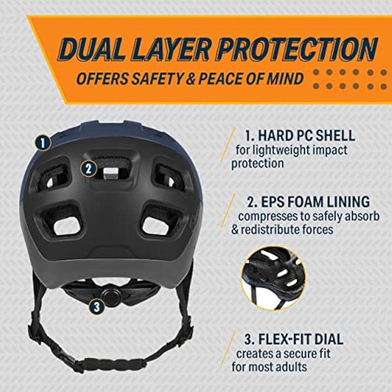 Protección de la cabeza: para una máxima protección de la cabeza contra golpes o caídas, hemos diseñado este casco de MTB con una carcasa exterior de policarbonato resistente y un forro interior de EPS para absorción de contacto en caso de emergencia.