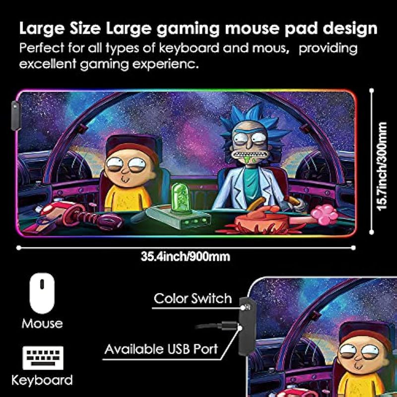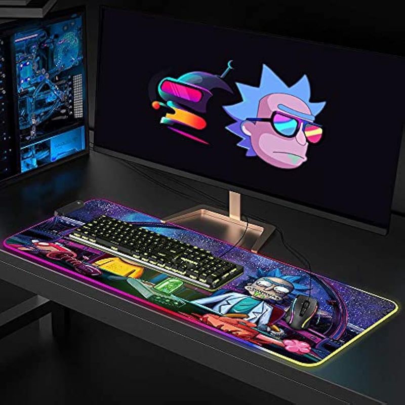 Bimormat Alfombrilla de mouse RGB para juegos con luz LED, base de goma, tapete de escritorio