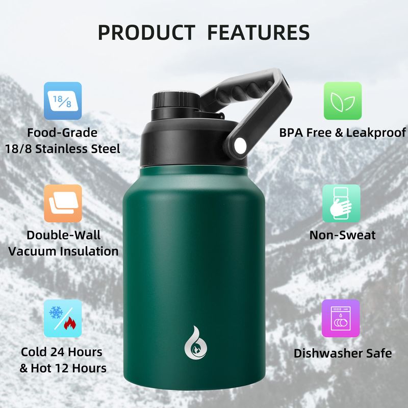 JARDÍNCAMPINGTERMOSBJPKPK Botella de agua aislada de un galón (128 onzas), termo de acero inoxidable apto para