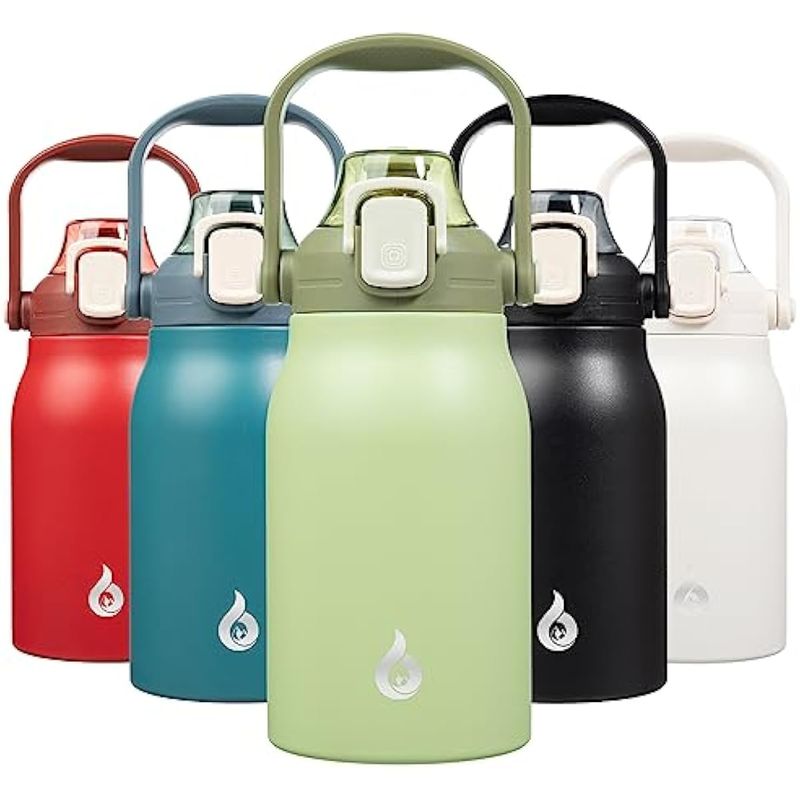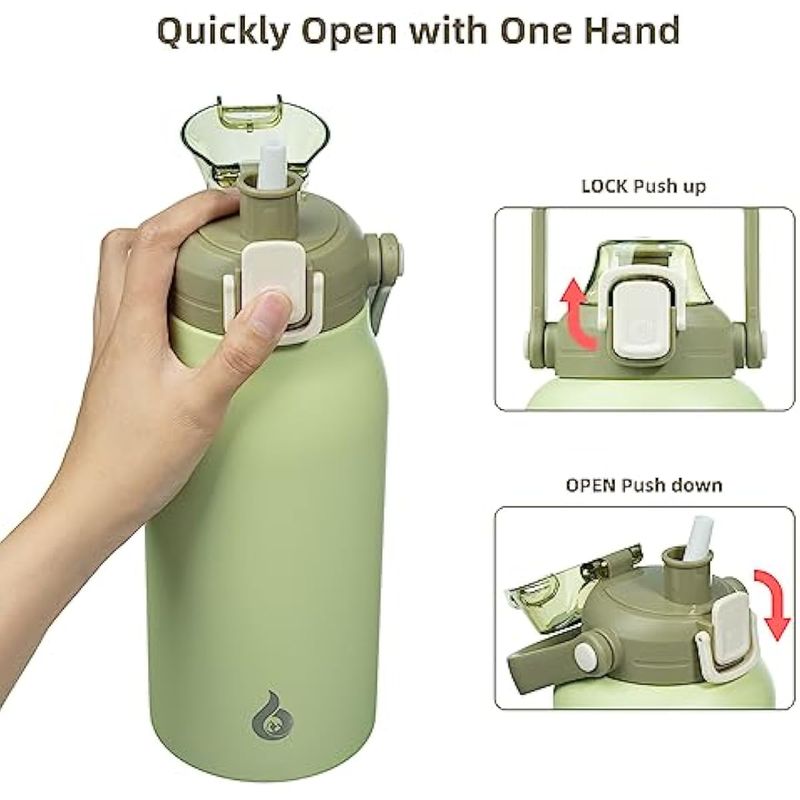 JARDÍNCAMPINGTERMOSBJPKPK Botellas de agua aisladas con pajilla, botella de agua de metal de acero inoxidable de 35