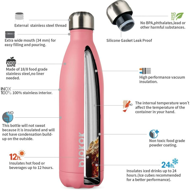 JARDÍNCAMPINGTERMOSBJPKPK Botellas de agua aisladas de 17 onzas / 16.9 fl oz, botellas de agua de acero inoxidable,