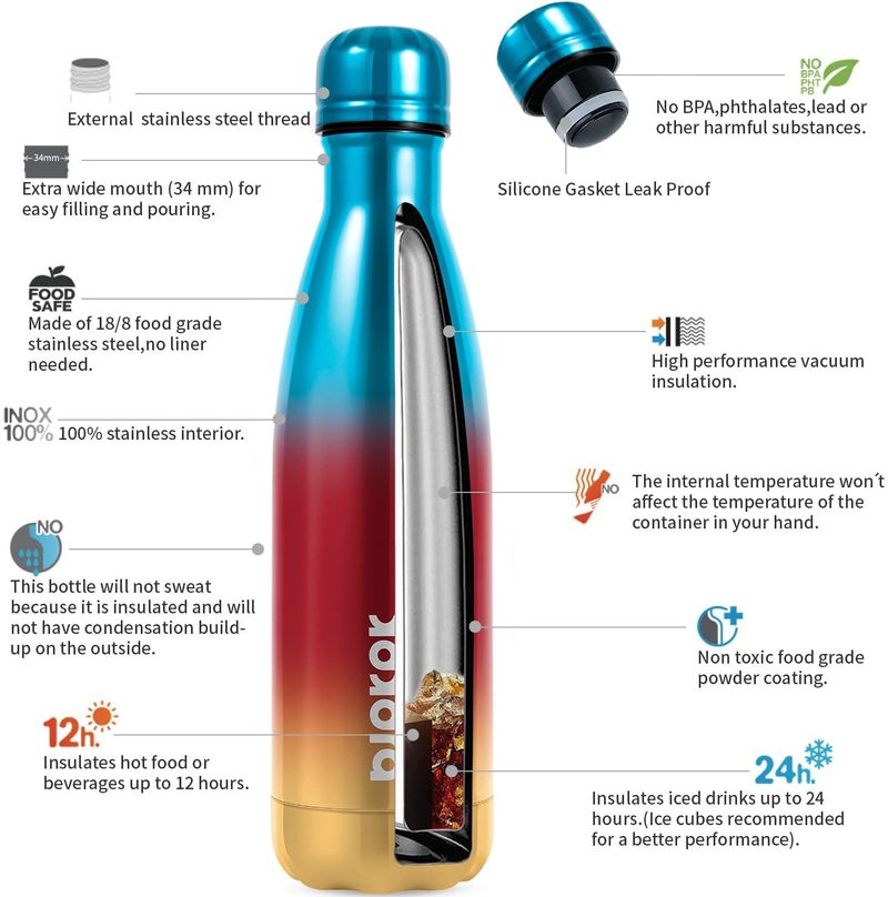 BJPKPK Botellas de agua aisladas de 17 onzas / 16.9 fl oz, botellas de agua de acero inoxidable,