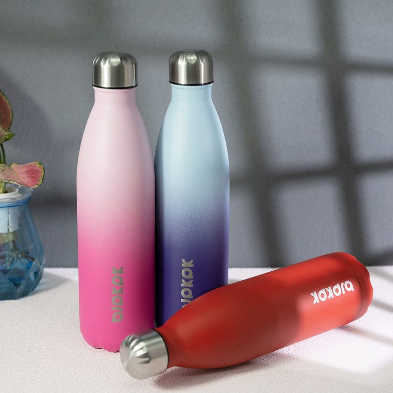 Seguro y fiable: sin BPA, hecho de acero inoxidable 188 de grado alimenticio, botella aislada al vacío de doble pared. Ecológico, sin plomo, a prueba de óxido y a prueba de fugas, sin sudor, sin condensación.